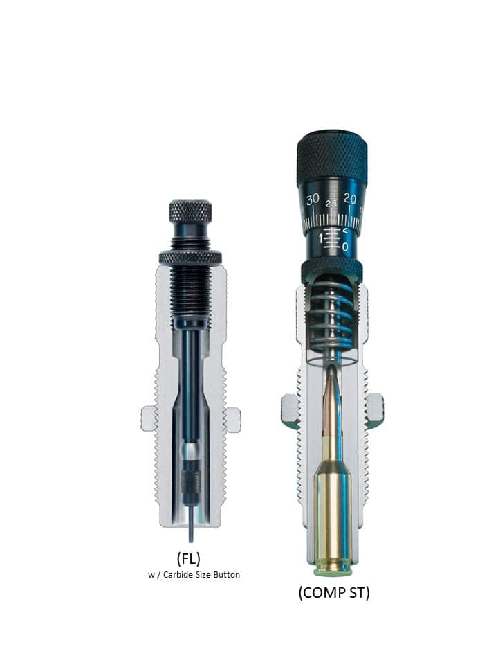 The Master Hunter (MH-C) Die Set was designed for the hunter that wants to make extremely precise handloads that feed and chamber reliably in the field where a quick follow up shot might be needed. As such, this die set features a Full Length Sizing Die designed to resize the cartridge case and adjust the shoulder position as needed to promote proper chambering. The addition of a free floating carbide size button makes inside neck resizing smoother and easier without lubrication. Also included is the industry leading Competition Bullet Seating Die that assures precise bullet and case alignment before and during the seating operation. This die is also micro-adjustable making adjustments to seating depth fast and accurate.